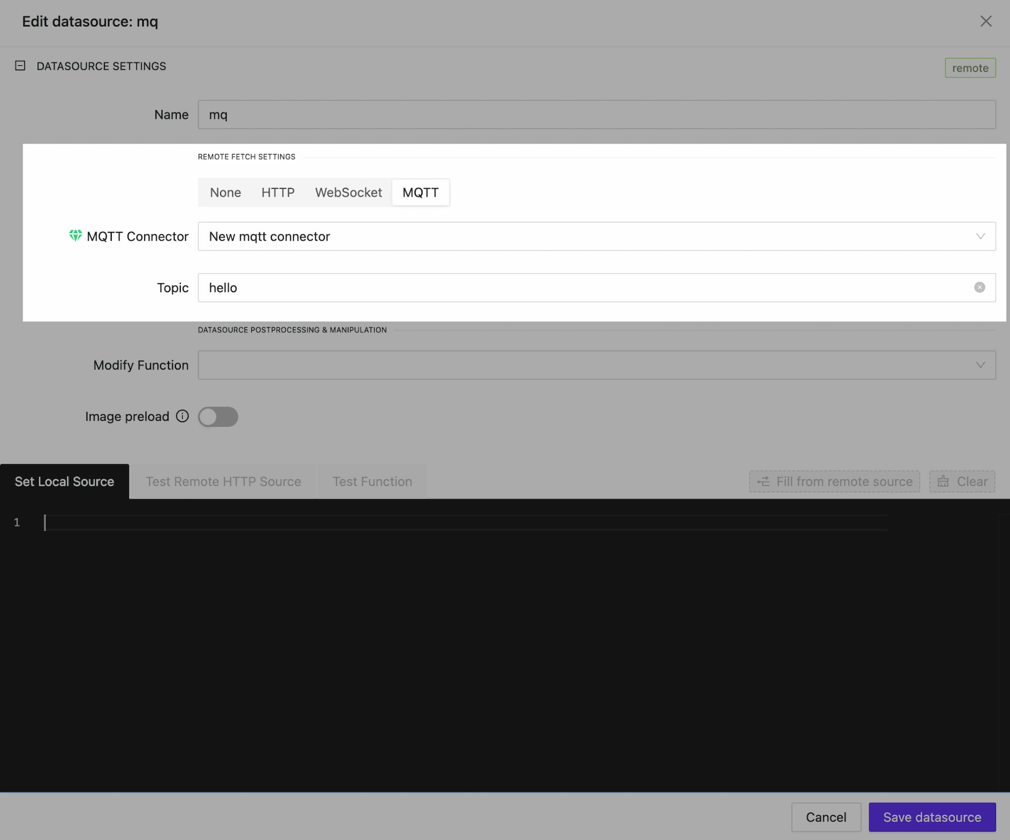 Dynamic Data Through MQTT Data sources