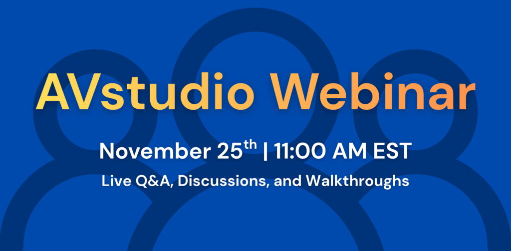 AVstudio is excited to announce our upcoming live webinar on November 25th at 11:00 AM (EST). This session is designed to give our users a deeper look into what AVstudio Editor can do, while also providing direct access to our team for a live Q&A.