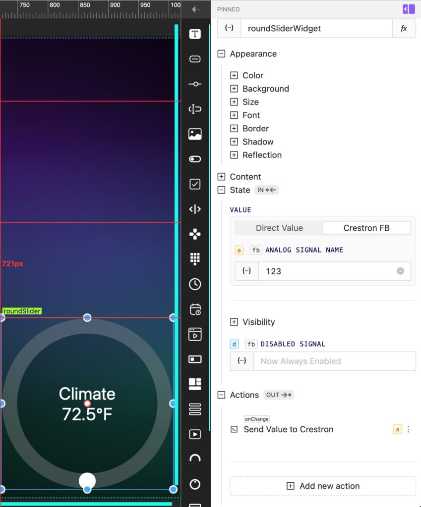 Another approach is to use common interface builders provided by control system manufacturers. These tools simplify the design process by offering a visual approach to development, rather than requiring manual code writing. With drag-and-drop components, preconfigured templates, and guided workflows, integrators can assemble an interface with significantly reduced technical overhead.